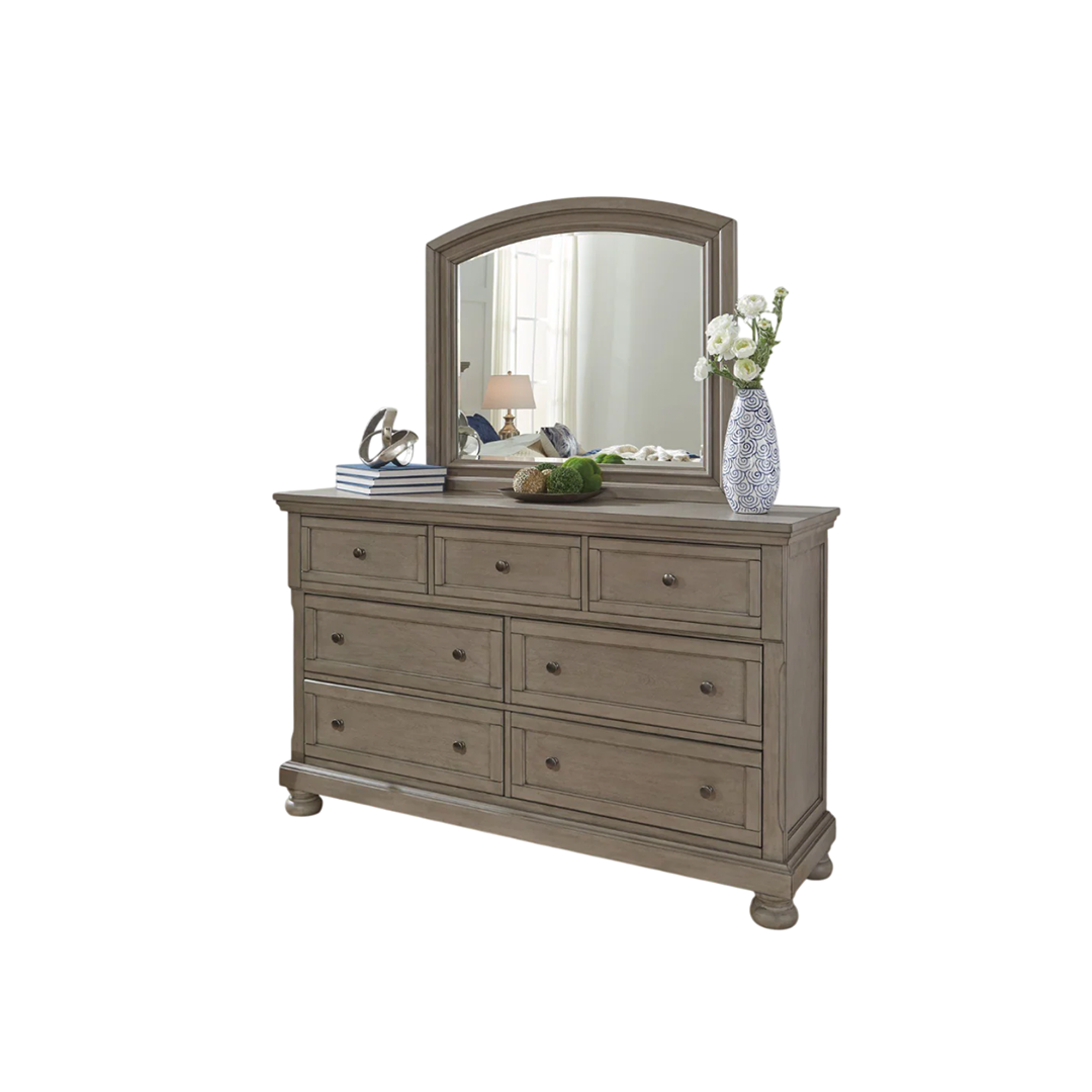 Bu yatak odası aynası ahşap, kaplamalar ve işlenmiş ahşaptan yapılmıştır. Şifonyer ve ayna seti oluşturmak için serideki diğer öğelerle eşleştirilebilir.