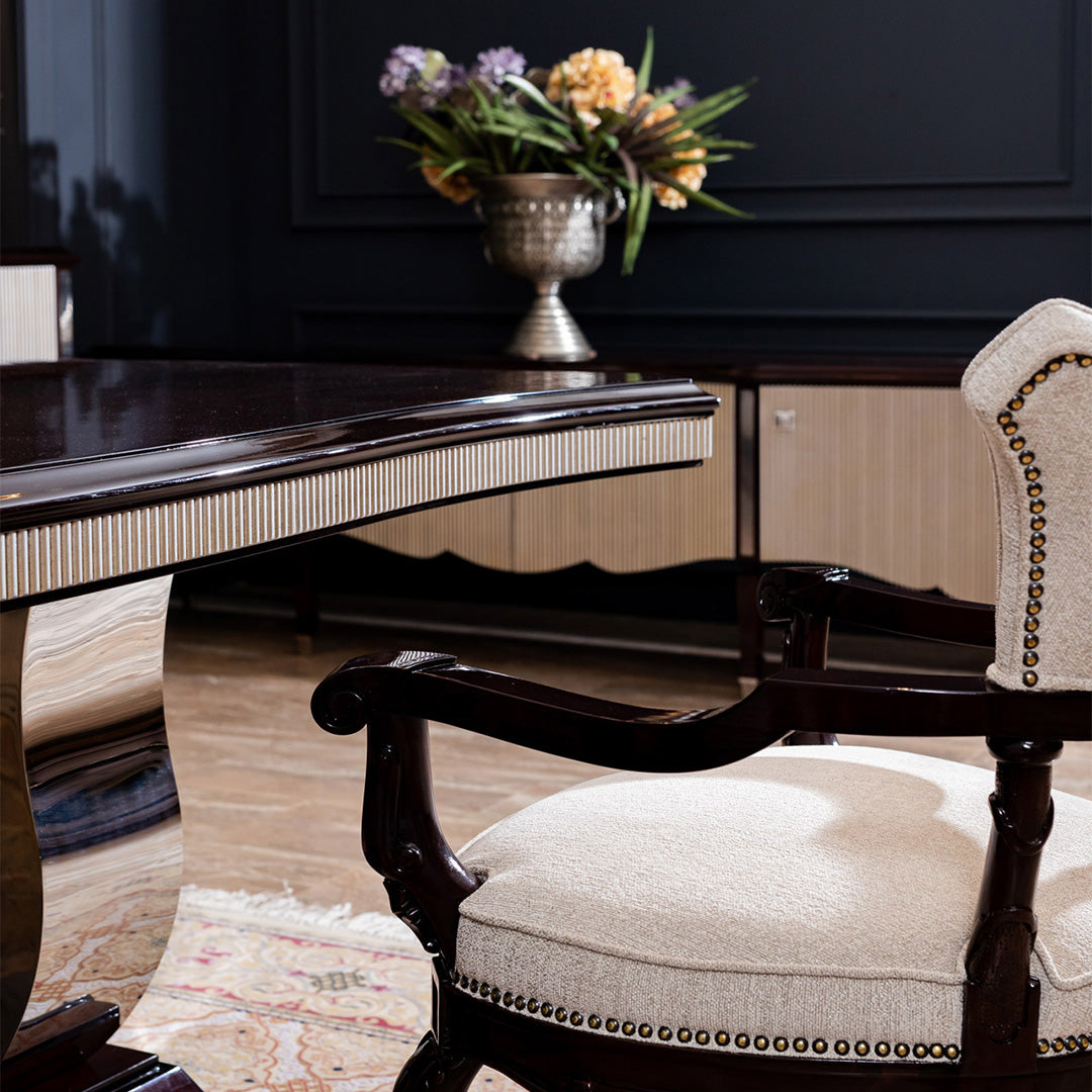 Yemek odaları sadece yemek yenen yerler değil; sohbetin, paylaşımın ve birlikteliğin yaşandığı özel alanlardır. Bu bilinci yansıtan Abdullah Torun, yemek masası, konsol ve sandalyeleri doğal masif ağaçlarla ve geleneksel el işçiliğiyle şekillendiriyor. Her masa, elde işlenmiş yüzeyiyle özgünlüğünü korurken, sağlam yapısı sayesinde nesiller boyu kullanılabilecek kalitededir. Sandalye ve masa detaylarında yer alan zarif el oymaları, sofralarınıza yalnızca şıklık değil, bir hikâye katar.