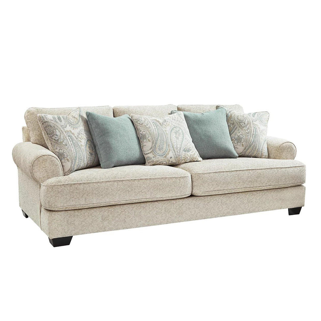 Bu kanepe, klasik ve modern tarz arasında harika bir denge kuruyor. Geleneksel unsurlar arasında modern bir zarafet için açılımlı oturma yeri ve geri çekme kolları bulunur. Spa sisi deseni ve jakar desenli lüks yastık koleksiyonu kanepenin basit dokulu şönil döşemesini sessiz, yumuşak bir şekilde tamamlıyor. Kumtaşı beji seçimi, nazik ve sevimli bir stil uyanışıdır.