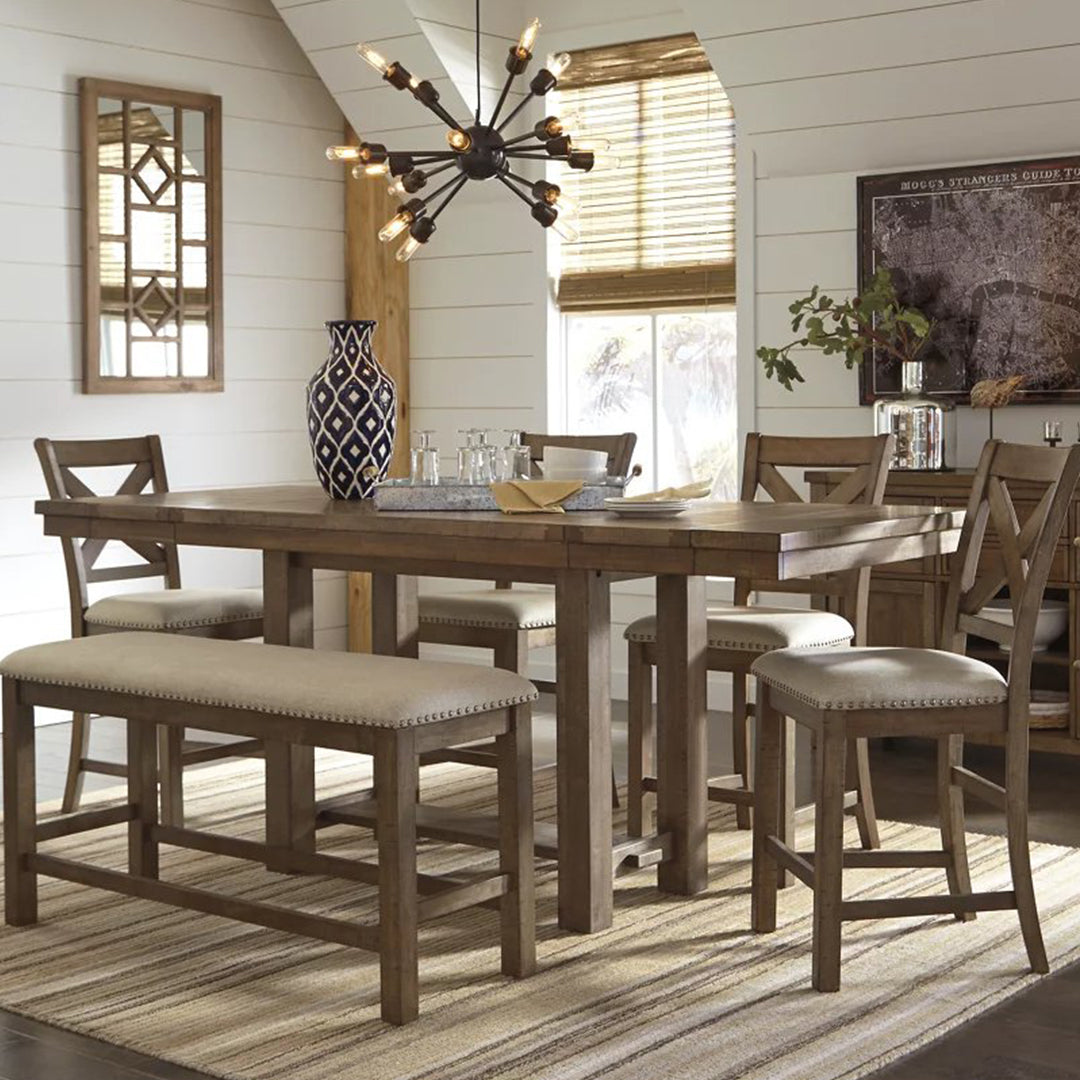 Bu yemek odası uzatma masası, gündelik rustik tarzın sanatını yükseltiyor. Çiftlik evi profili, daha fazla çekicilik için eskitilmiş hindistan cevizi kaplaması ve kalın tahta efektli üst kısım ile güzelleştirilmiştir. Açıldığında, 8 kisi rahatça yemek yiyebilir.