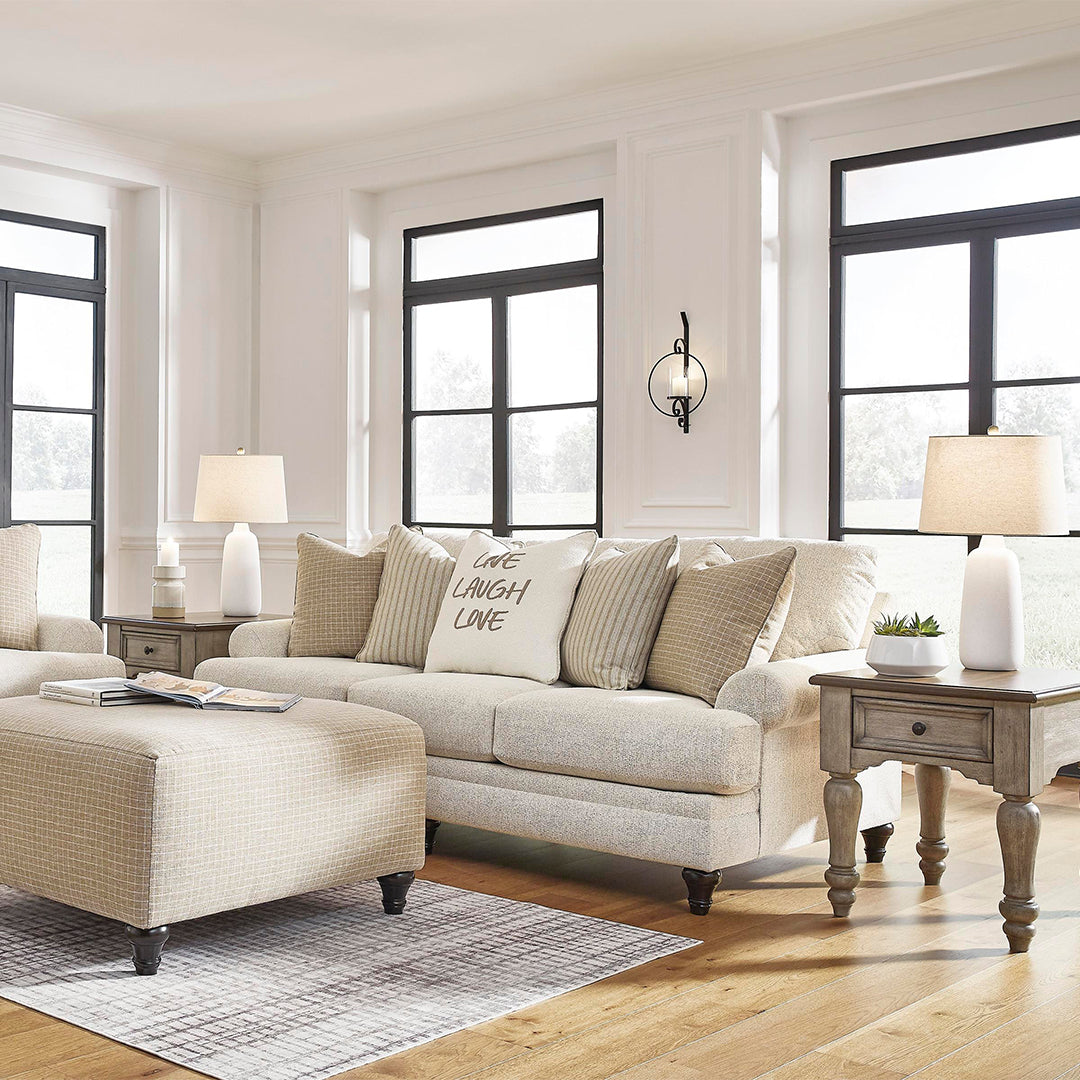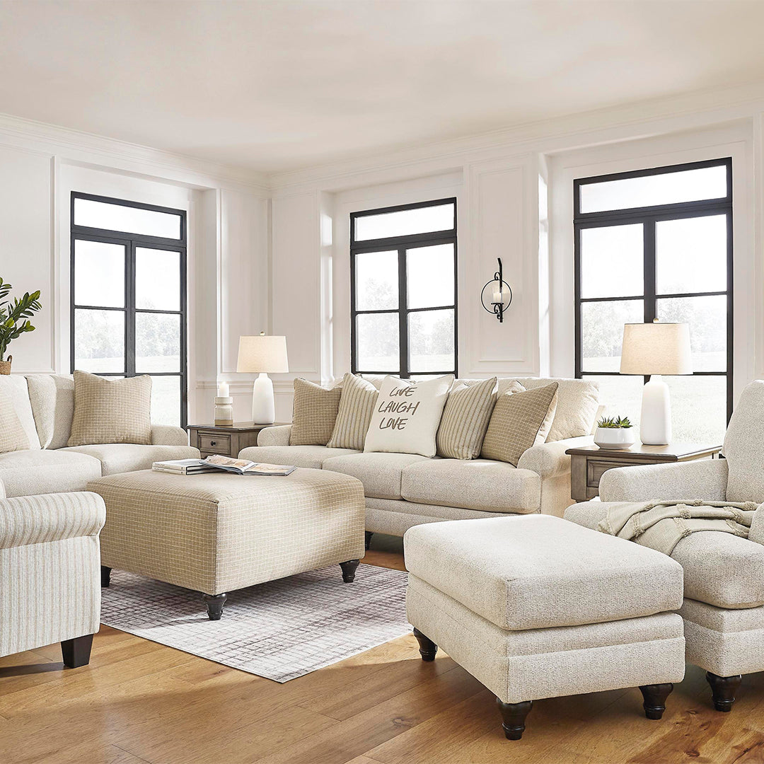Köşe bloklu çerçeve Tersine çevrilebilir koltuk ve sırt minderleri Poli elyafla sarılmış yüksek dirençli köpük minderler Vurgu yastıkları dahildir Tüy elyaf karışımı yastıklar Polyester döşeme Dekoratif döner ayak Platform temel sistemi, 20.000 test döngüsünden sonra daha eşit destek sağlayarak yay sistemine göre 3 kat daha iyi sarkmaya karşı direnç gösterir Pürüzsüz platform temel, kıvrımlı yay temellerinde zamanla oluşabilen çökmeler veya sarkmalar olmadan sıkı, kırışıksız bir görünüm sağlar